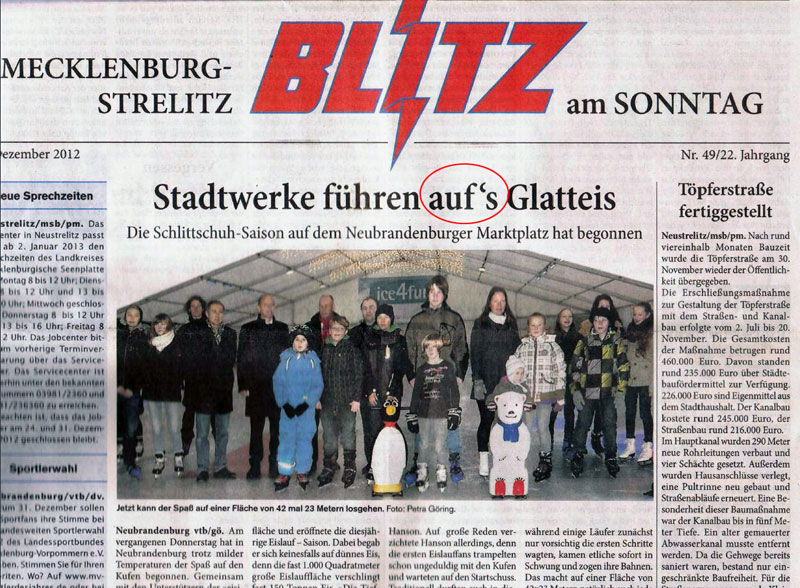 auf’s GlatteisVeröffentlicht am 17. April 2013von AndreasZeitung Blitz am Sonntag, Mecklenburg-Strelitz Fundort auf der Karte anzeigen Teilen Twittern