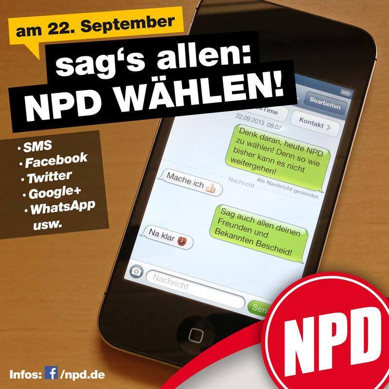 Deppenapostroph bei der NPD. Ein Deppenapostroph ist es übrigens deshalb, weil es sich nicht um einen Apostroph, sondern um ein schließendes einfaches Anführungszeichen handelt.