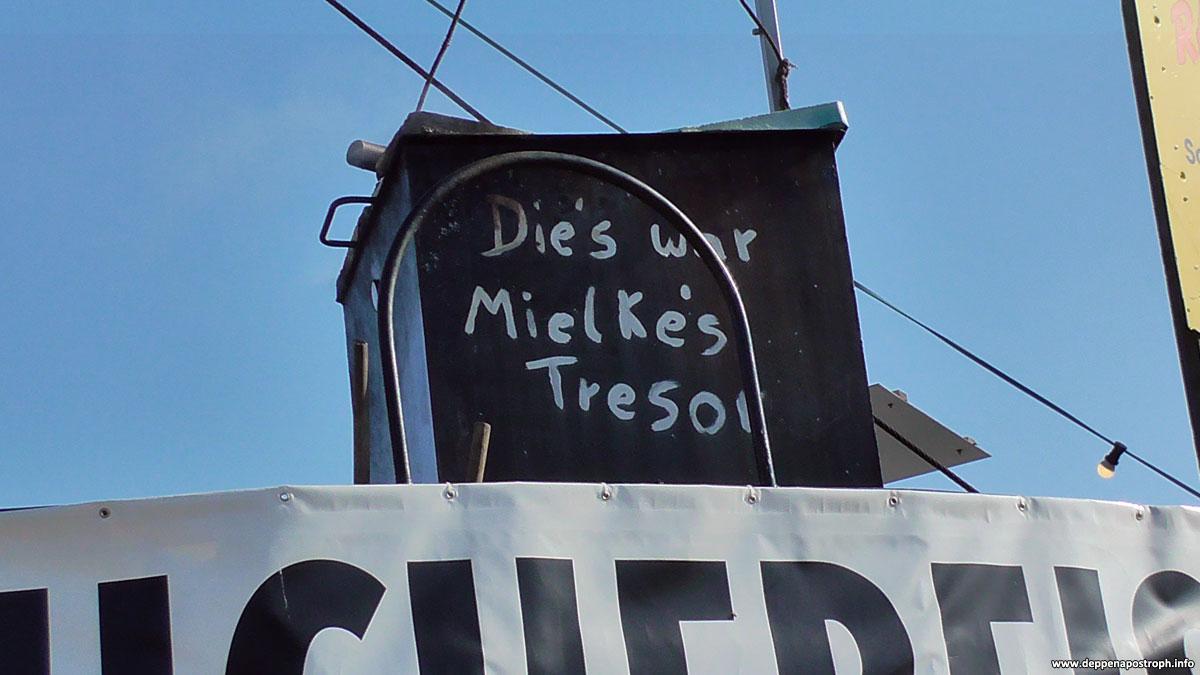 Die’s war Mielke’s TresorVeröffentlicht am 16. August 2015von AndreasGenitiv Entdeckt auf dem Räucherschiff „Elbe“ in Ralswiek (Rügen) von Jörg Knochen. Fundort auf der Karte anzeigen Teilen Twittern