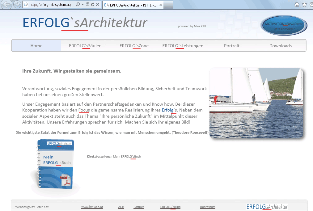 Bei dieser Webseite mit dem Titel “Erfolg`sArchitektur” (Quelle) fragt man sich bei den 11 Deppenapostrophen allein auf der Startseite unweigerlich, welche Kreation am meisten weh tut: Erfolg`sArchitektur, die Erfolg`sSäulen, die Erfolg`sZone, die Realisierung Ihres Erfolg`s, das Erfolg`sBuch oder die Tatsache, dass es sich noch nicht mal um einen gültigen Apostroph handelt, sondern um einen Accent Grave. Das Sahnehäubchen ist aber, dass sich sogar im Favicon der Seite ein Deppenapostroph befindet (ein Favicon ist das kleine Icon, das in der Adresszeile vor der Webseitenadresse erscheint).