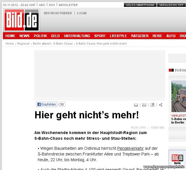 Hier geht nicht’s mehrVeröffentlicht am 10. November 2012von AndreasZeitung Es geht doch nicht’s über die tägliche Lektüre der Blöd-Zeitung … Fundort auf der Karte anzeigen Teilen Twittern